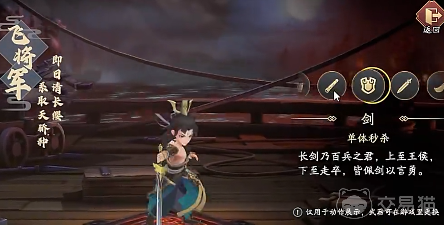 近战输出武器包含长剑、大刀与长枪。长剑主打单体爆发,拥有极高的物理攻击力和反伤机制,其必杀技可对单一目标发动多次连续打击,伤害逐次递增;若敌方处于低增益状态,则能触发额外多段伤害。