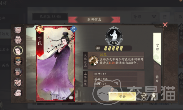 对于辅助型主将而言,搭配同类型的副将效果更佳。其中,卞氏是一个非常值得推荐的辅助副将,其技能可大幅提升全队攻击力。此外,部分副将拥有专属武器,需通过完成指定任务获取。装备专属武器后,副将的整体表现会有明显提升。实战中,建议保持主将与副将之间的距离不超过两格,以便更容易触发合击技。虽然大部分技能可由系统自动释放,但像“疾风突刺”这类主动技能,手动施放能提高命中率和战术灵活性。