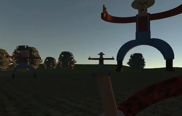 游戏中有不少需要玩家细心观察才能触发的互动彩蛋。当你登上农场最高处的山顶时,不妨切换为自由视角环顾四周,可能会发现一个意想不到的画面——平日忙碌的约翰竟然独自出现在滑梯区域,正开心地玩耍。这一幕与主线毫无关联,却为整体氛围增添了一丝轻松感。此外,农田中的稻草人也不只是摆设,一旦靠近,它会突然启动并发起攻击,此时必须依靠快速反应和精准闪避才能安然脱险。