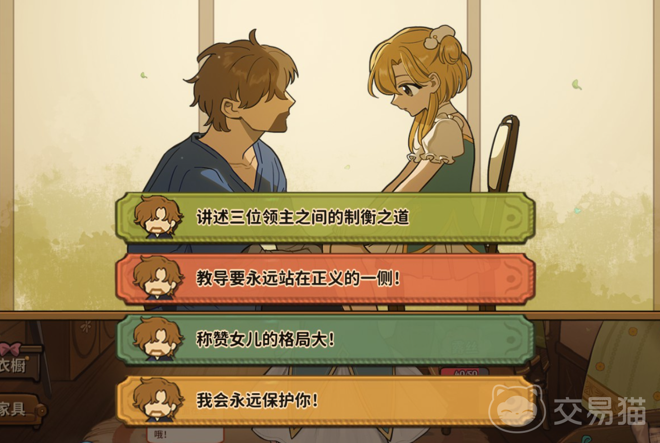 占卜师相关事件中,若选择“教她保护自己”,将提升博学属性,进一步推动智力成长路径。关于属性影响机制:当女儿年满12岁后,选择“永远保护”选项可提高爱值,更高的爱值将解锁更多温馨的家庭互动剧情;而“勇往直前”的抉择则强化勇敢属性,使她在面对突发事件时更倾向于采取积极果断的应对方式。