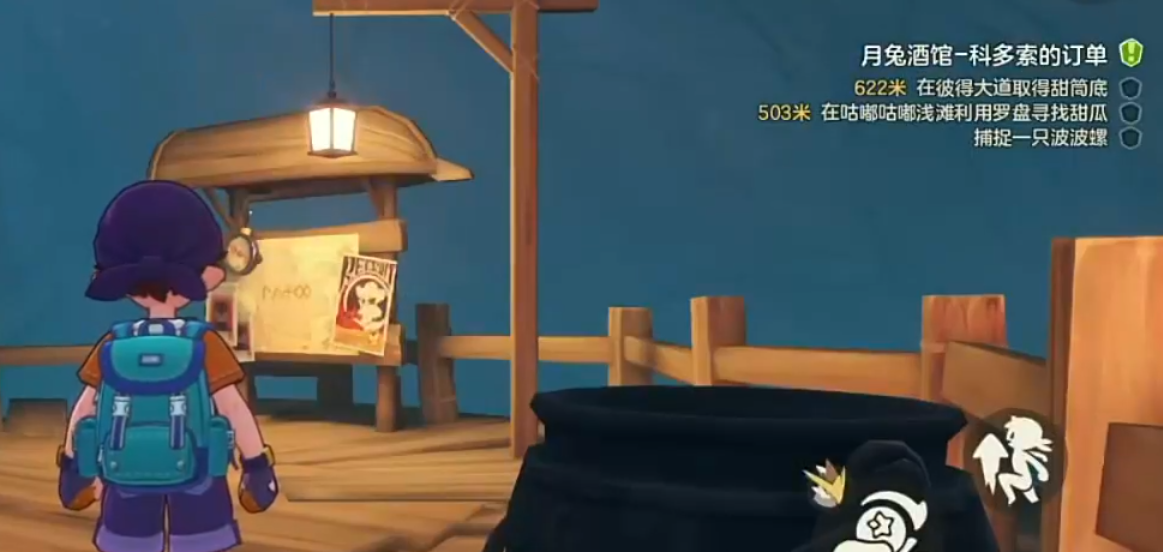 返回月兔酒馆后,将获得的好甜筒和甜瓜交给厨师弗格尔,并将捕捉到的波波螺加入队伍。随后在水炉处投掷波波螺进行加工处理,完成料理制作。此时顾客科多索会自动出现,与其对话并交付成品,最后执行一次鞠躬动作,即可成功完成订单并领取奖励。