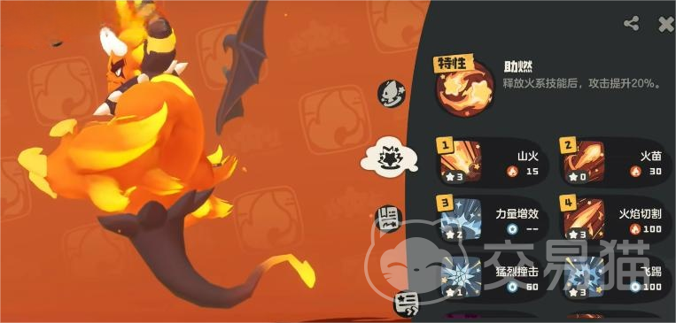 推荐携带山火、火苗、力量增效与火焰切割四个技能。其中,火苗可快速叠加山火的威力层数,而力量增效不仅能提升自身攻击等级,还能进一步强化山火的实际伤害输出。当增益叠满后,山火将触发一击必杀机制,造成远超常规技能数倍的爆发伤害,足以瞬间清除高血量目标。