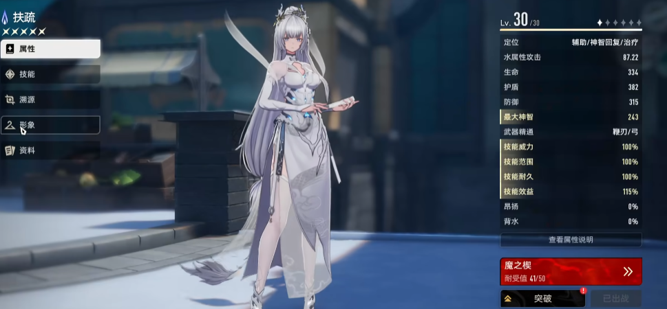 接下来是辅助型角色扶疏,她在队伍中主要承担团队增益职责。其技能可为全体队友提供15%的技能效果加成,同时恢复“神智”值——这一数值在游戏中直接影响角色释放大招的频率。拥有她在队,团队的整体续航能力和技能释放节奏将更加流畅。此外,面对敌方灵活突进单位时,她还具备一定的反打能力,在控制战场节奏的同时也能完成关键反杀。对于追求高难度挑战或参与高端对战的玩家来说,携带扶疏这类全能型辅助能极大提升队伍稳定性。
