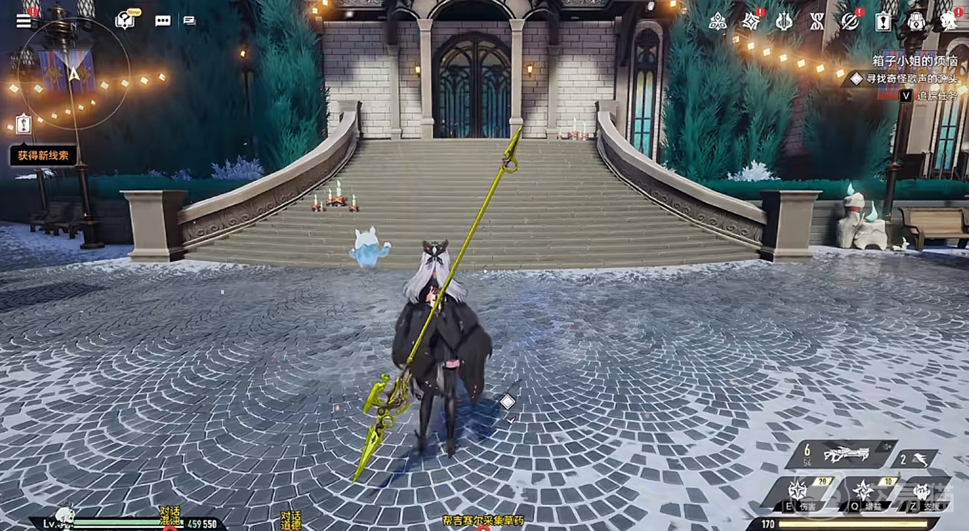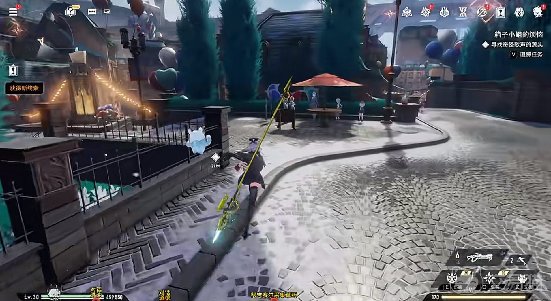 “箱子小姐的烦恼”是冰湖城区域中的一个隐藏支线任务。当角色进入冰湖城东区外围广场时,会听到一段神秘的歌声,此时任务将自动激活。点击任务追踪功能后,系统会引导玩家传送至修普诺斯之家的传送点。从该点出发,向南方向前行约一二百米即可抵达任务指定位置。值得注意的是,必须从一处小巷的暗处跳下,才能成功触发后续剧情动画。