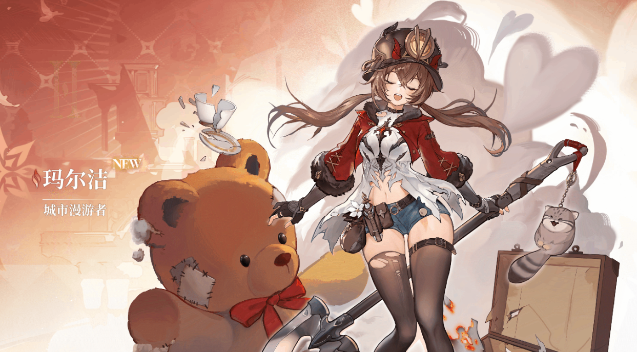 玛尔洁是一名功能性辅助型角色,擅长为队伍提供攻击力增益。其被动可在自己或队友拾取掉落物时获得一层“捡到宝”,最多叠加多层;技能“攻袭”可使周围队友获得攻击力提升;“万能寻宝铲”则对周围多个敌人造成火属性伤害并附带眩晕控制效果;