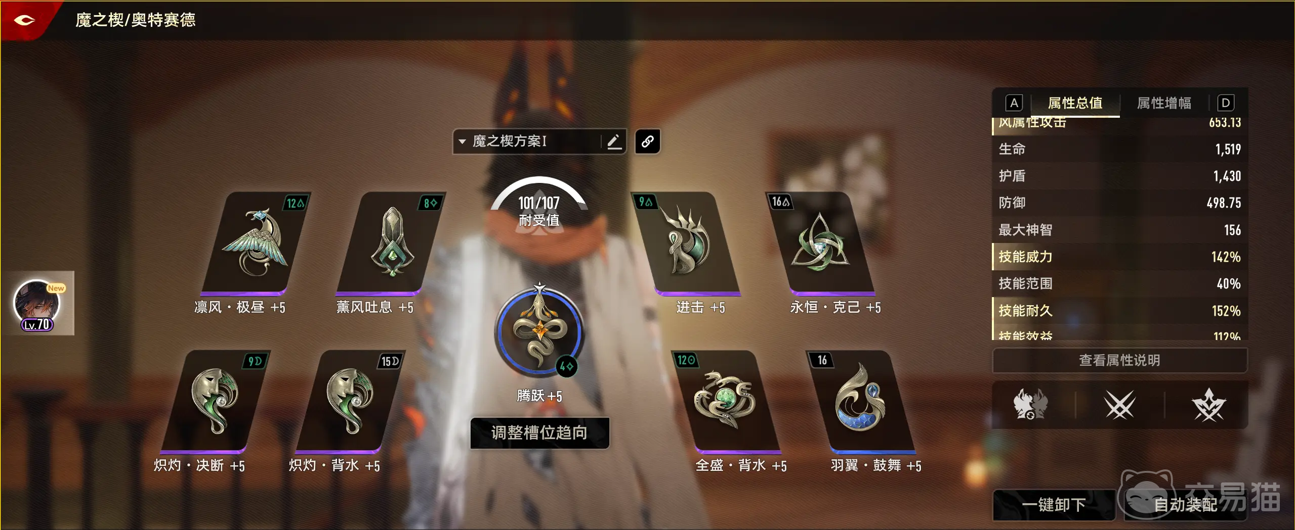 构建奥特赛德的魔之楔配置时,应围绕“爆发输出”与“破甲效率”两大核心目标展开。推荐组合包括:“凛风·极昼”、“萧风吐息”、“永恒·克己”、“全盛·背水”以及“炽灼·决断”,这些魔之楔均能有效强化技能释放节奏与伤害密度。当资源尚不充裕时,优先提升主属性中的技能威力,确保前期具备足够的秒伤能力;待基础成型后,再逐步补足耐久类属性,提高战场生存能力。