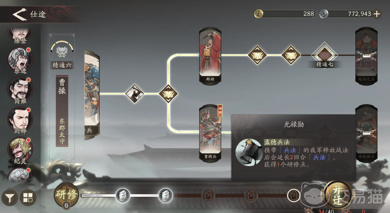 其天赋“孟德兵法”可在战斗开始时为全队施加兵法状态,当与具备兵法的单位发动合击时,双方均可获得昂扬增益。该天赋升至满星后可触发两次效果,五星激活状态下还可额外提供严阵状态。由于曹操无法通过抽卡获取,提升星级主要依赖完成成就任务,因此推图过程中务必重视成就进度积累。
