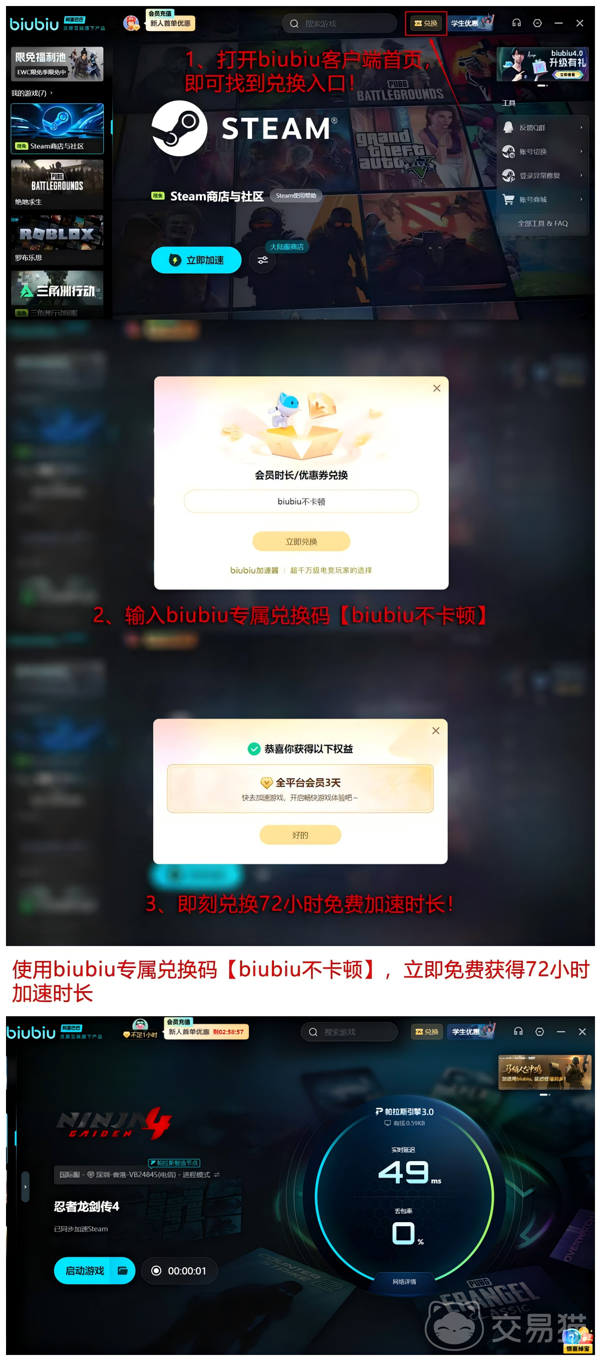 针对网络延迟问题,推荐使用专业级加速工具提升连接质量。由知名电竞选手左梓轩担任产品体验官的加速服务,凭借稳定的连接表现赢得广泛认可。该加速器采用帕拉斯3.0引擎技术,显著增强数据传输效率,有效降低丢包率与延迟波动,支持多平台无缝加速。无论是单人闯关还是多人联机模式,都能实现更顺滑的操作响应。输入专属口令【biubiu不卡顿】可在兑换界面领取3天加速时长,首次使用者还可额外获赠24小时免费试用时间,总计可享受96小时的高效加速服务。