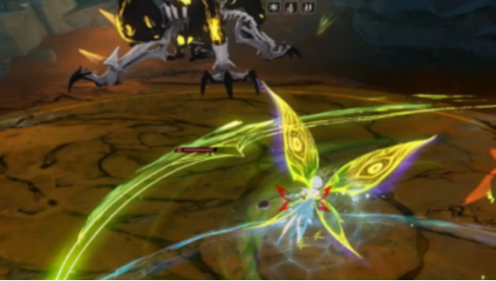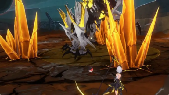 若未能及时终结boss生命值,其将转入狂暴状态。此时屏幕上会出现四道高速旋转的光幕,玩家需根据其运转方向同步位移,保持跟随式走位以规避晶体喷射攻击。待光幕消散后,boss会发动全屏震动类技能,此阶段可借助具备飞行能力的角色(如赛琪)占据空中优势,既能安全输出,又能有效躲避地面范围伤害。