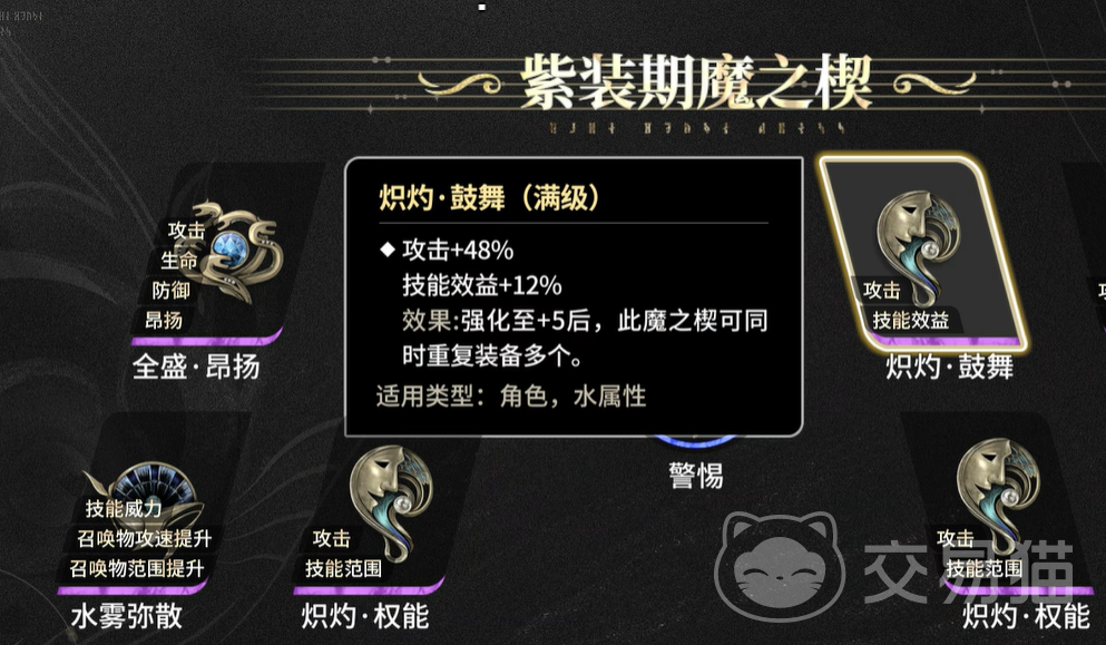 推荐使用炽热套装作为丽蓓卡的主要魔之楔配置。该套装两件套提供攻击倍率加成,有助于提高基础伤害输出;四件套则进一步扩大技能作用范围并提升技能倍率,这对丽蓓卡尤为有利。她的主动技能可召唤水母对范围内敌人进行持续打击,技能范围扩大后能更快地为多个目标叠加爱之毒,从而加速伤害累积过程,显著提升清怪效率。