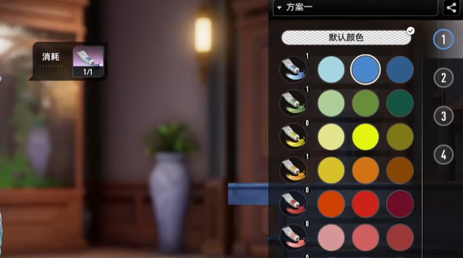 确认配色方案后,直接点击“应用染色”即可完成操作。值得注意的是,多数武器包含多个可染色区域(标注为1、2、3、4等编号),但任务仅要求对任意一个区域成功染色便可视为完成。完成后将获得基础货币及常用染料作为奖励。