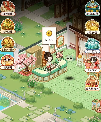 在进入游戏后,建议将整体玩法拆分为两个核心部分来理解:一是模拟经营系统,二是三消关卡机制。首先来看经营部分,玩家将拥有属于自己的客栈,需要通过不断升级家具设备、优化店内布局来提升服务质量,从而吸引更多顾客光顾并获取收益。这一部分的操作逻辑清晰,延续了传统模拟经营类游戏的设计思路。