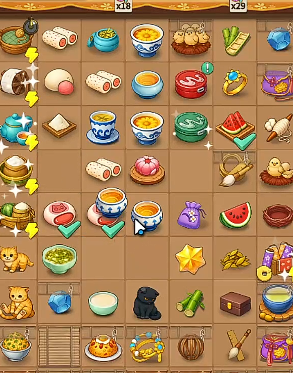 而另一大核心玩法则是经典的消除模式。玩家需要在限定步数内,找出相邻区域中相同的图案进行配对消除,累计得分越高,结算时获得的奖励越丰富。这些奖励资源正是用于推动客栈发展的关键材料,因此三消环节的表现直接影响到经营进度,两者之间形成了紧密的联动关系。