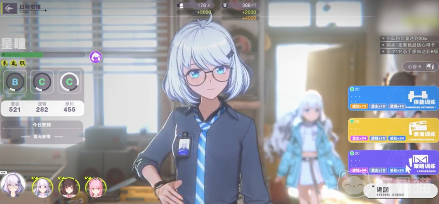 在角色培养方面,游戏提供了丰富的成长路径。玩家可通过安排训练和活动来提升偶像的舞台表现力、心理状态及各项属性值。此外,特有的心得卡系统将进一步影响角色在战斗中的技能释放时机与战术配合,增强阵容搭配的策略深度,使每一场对战都更具变数与挑战性。