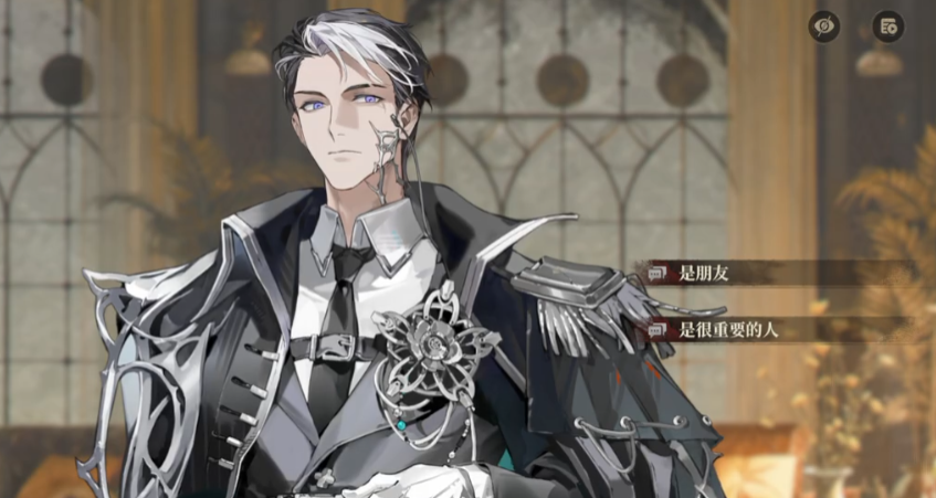 第一位是某某人,整体形象优雅而高贵,常佩戴礼帽,展现出极强的贵族气质。他与女主的互动较早展开,剧情发展充满心理博弈,每一个选择都需谨慎权衡。该角色内心深邃,情感表达隐晦,属于高难度攻略对象,适合喜欢挑战复杂关系的玩家。