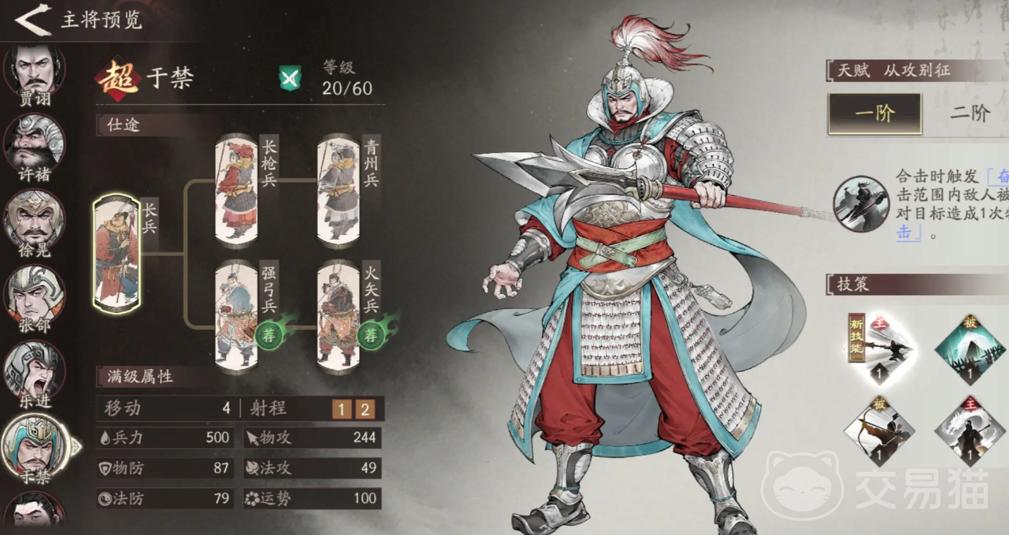 于禁的核心优势在于追击机制。“假节钺”天赋赋予他在特定条件下持续追击的能力,而技能“讨暴坚垒”则进一步补足了伤害输出,使其在多段打击与节奏压制方面表现突出。