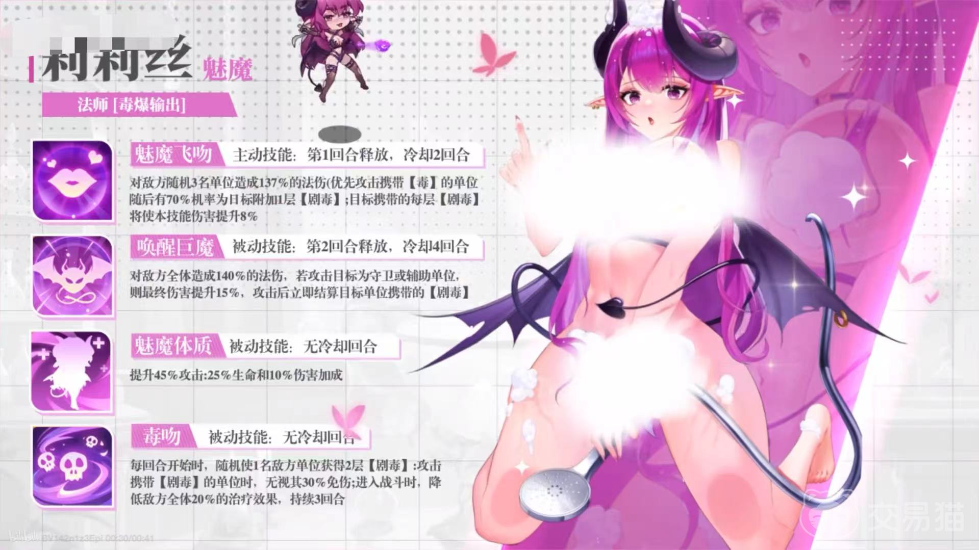 游戏中的角色设计基于传统五行体系如风、火等元素划分,同时结合法师职业、战士职业等定位机制。莉莉丝属于暗系神话品质少女,被阵营内的骑士称为“魅魔”,是一名擅长使用毒素进行高爆发输出的法师型单位。下面将围绕她的技能机制展开详细说明。