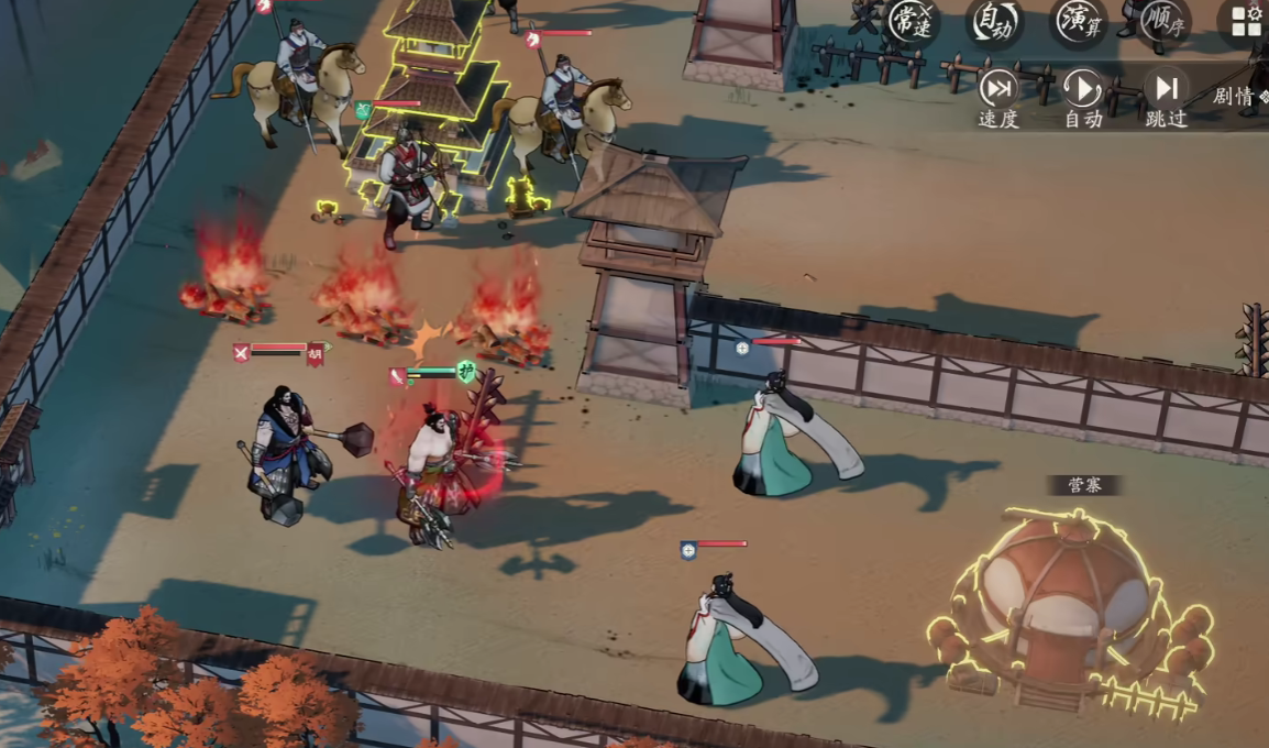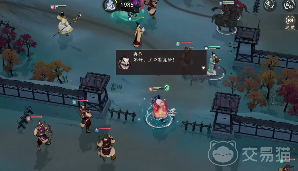 战斗方面,典韦的核心机制在于“反击”系统——每当他受到伤害时,会立即对攻击者进行一次反击后再执行自身行动。这一特性使得他在面对单体高血量敌人时表现出色,但若遭遇多单位围攻,则容易因连续受击而迅速阵亡,因此需注意战场走位与敌军分布情况。