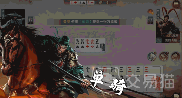 此技能由关羽持有,当玩家成功打出包含3至8的连续顺子(即长蛇阵)时,可额外获得一张万能牌。这张牌可用于替代任意手牌,极大增强后续出牌的灵活性和连贯性。