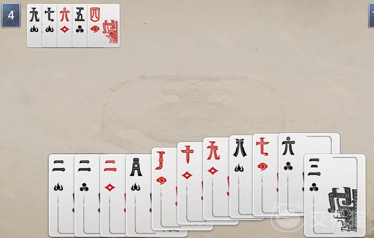 郭嘉的“遗计”机制十分独特:若剩余手牌数量等于本轮打出的牌数,则所有未出的手牌会立即转变为与刚打出牌型相同的组合。例如,打出5张组成的顺子(如4、5、6、7、8),且剩余手牌也为5张,即可直接转化为同类型顺子,实现快速清手牌的目的。