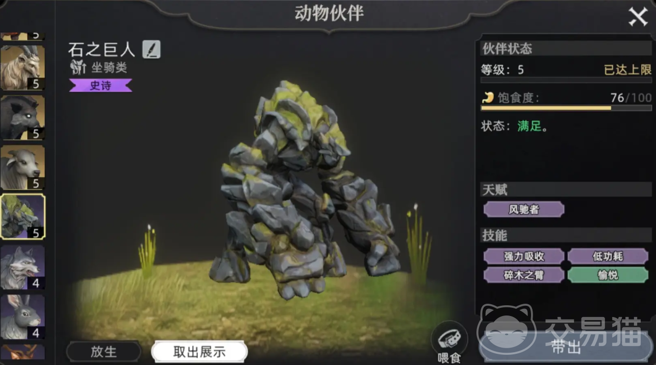 作为传说中的古老存在,石之巨人由岩石凝聚而成,身躯庞大且防御惊人,栖息于密林深处。击败其本体后有机会成功驯服。此宠物可提供高达30%的伤害减免,并有效减轻药品使用后产生的负面状态,适合前排抗伤角色长期携带。