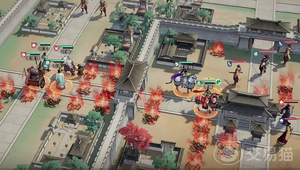 推荐出战阵容为曹操、关羽、夏侯惇与吕玲绮。布阵时应注意分散站位,避免被敌方AOE技能同时命中多个单位。曹操应置于相对安全的侧后方位置,确保其持续输出与辅助能力不受干扰。