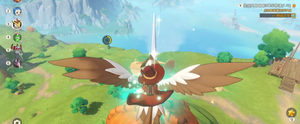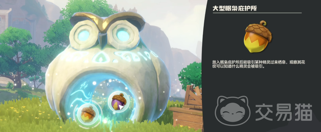 想要召唤水蓝蓝,首先需要使用精灵果实,并将其放置于眠枭庇护所内才能触发生成机制。而要解锁这类庇护所,则必须通过探索大世界收集“眠枭之星”。例如图示风车顶部就藏有一颗,建议大家在日常跑图时多留意场景细节,尽可能多地积累眠枭之星资源。