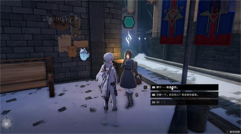 首先前往冰湖城东侧区域,并传送至上图所示坐标点。在此处找到NPC爱尔莎并与之对话,即可接取“消失的少女”任务。接任务后根据系统指引前行,寻找目标少女的位置。与她交谈时需进入共情对话环节,这类互动对角色的共情数值有一定要求,只有达到标准才能顺利推进剧情。