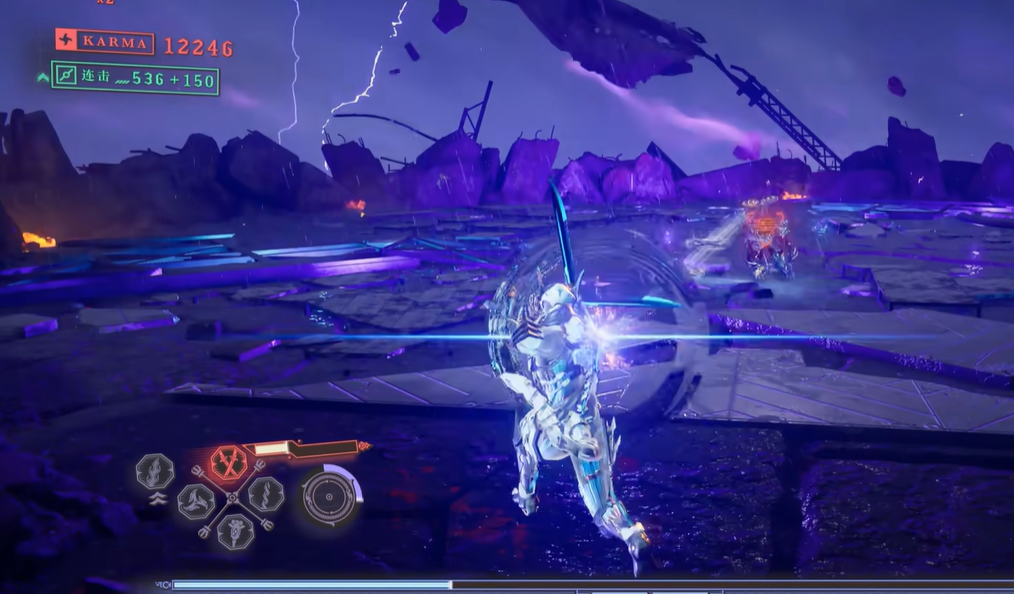 主角龙在战斗中会以“闪华”取代原有的鵺之型动作,消耗特定计量槽即可释放忍法技能。进入中级地图后,玩家可解锁飞鸟翻转之术:贴墙状态下连续点击跳跃键即可完成高空攀爬。这项技能不仅提升了场景探索效率,也为远程打击或躲避提供了更多战术选择。