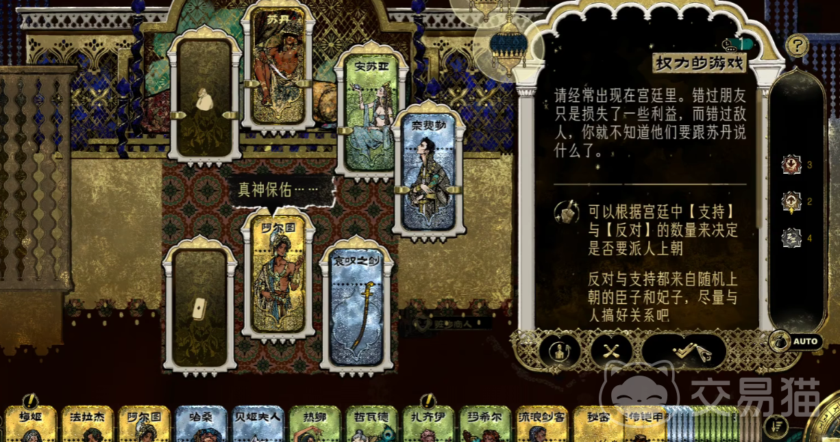 第一种为常规手段,但仅可使用一次。若玩家尚未完成“莎姬任务”,可在权力斗争环节主动触发请罪操作,通过提交苏丹的猜忌卡牌来移除一张负面标记。此行为虽能暂时化解危机,但会带来权势值减少5点的代价,并引发后续持续出现的“苏丹的戏弄”事件。在此类事件中,玩家将被迫做出损害团队利益的决策,影响整体发展节奏。