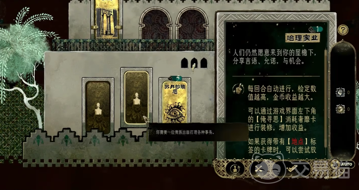 第三种途径是利用治理家业系统。玩家可在执行该行动时插入一张猜忌卡以实现清除效果。虽然这将导致接下来七天内无法通过治理获取金币收益,但相较于其他高风险选项,其负面影响较为可控,适合用于中期稳定局势。