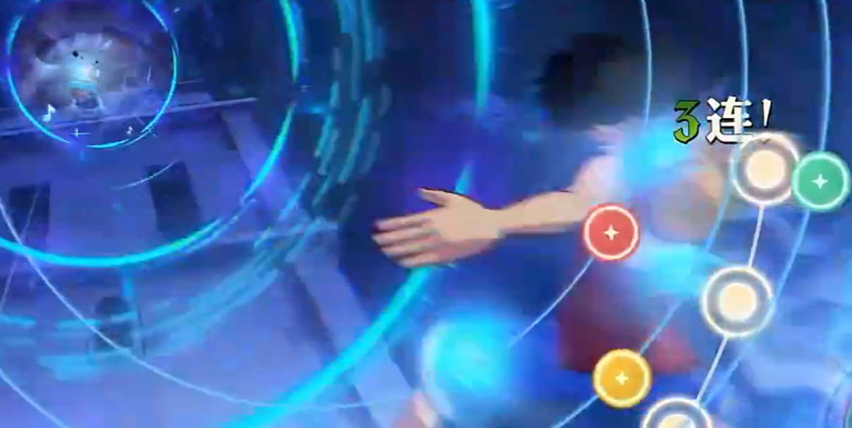 阿保的奥义技首先向前方释放一道音波冲击,随后出现特殊声纹提示,玩家需准确点击以激活增益效果,成功响应可显著提升技能总伤害,反之则会导致输出下降。终结技会对敌方单位施加一次强力爆破打击。援护技则能为队友提供三色音贝增益效果,同时使范围内敌人陷入沉默状态,无法释放技能。