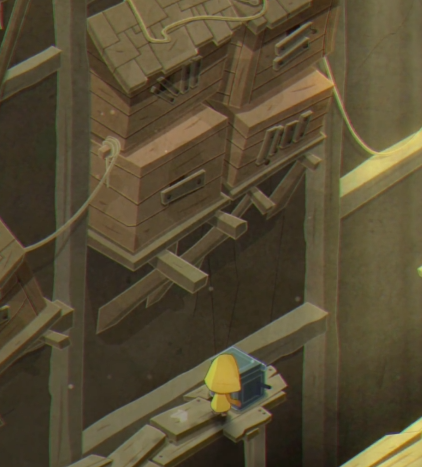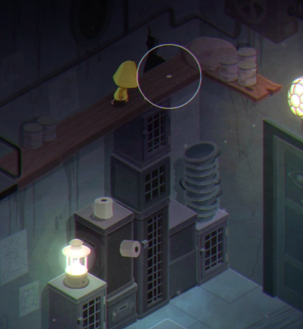 接下来的一处隐藏房间出现在下个章节中的一条堆满杂物的走廊。玩家需一路直行,忽略两侧的所有门。走到尽头时,在油灯附近会发现一条极不明显的缝隙,由此进入后即可到达隐藏房间。房间内设有架子和箱子,攀爬上去并与箱子互动即可完成收集。