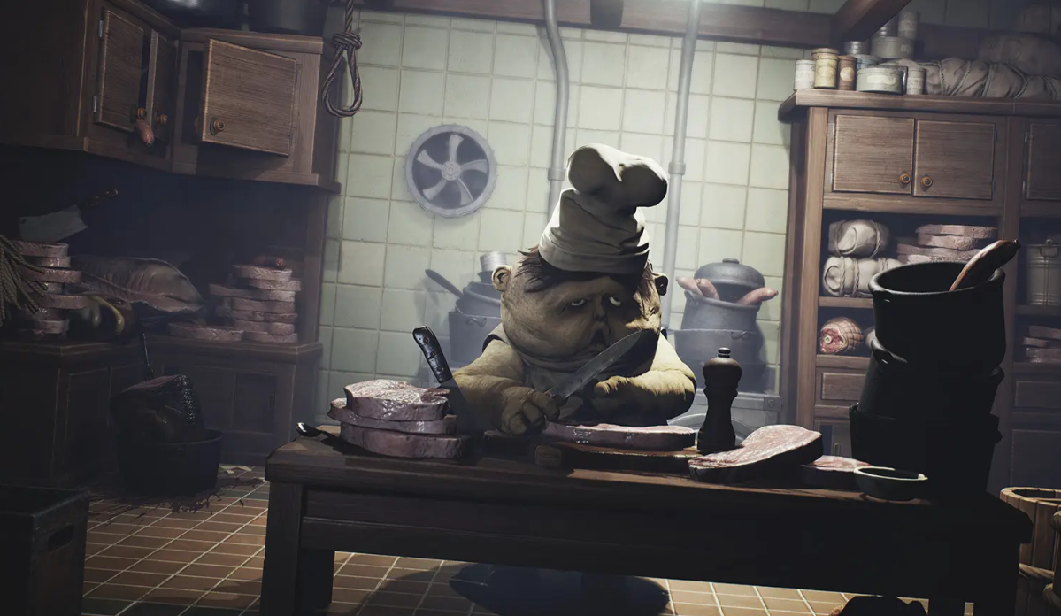 故事始于主角小六在名为“贪颚号”的巨型船只上苏醒。这艘船由多个结构复杂、氛围迥异的区域构成,包括阴冷潮湿的下水道系统、由肥胖厨师统治的厨房区,以及上层甲板中贵妇人所居的奢华却诡异的空间。每一个区域不仅是解谜与逃生的关键场所,也通过其环境设计传递出强烈的叙事信息和心理压迫感。