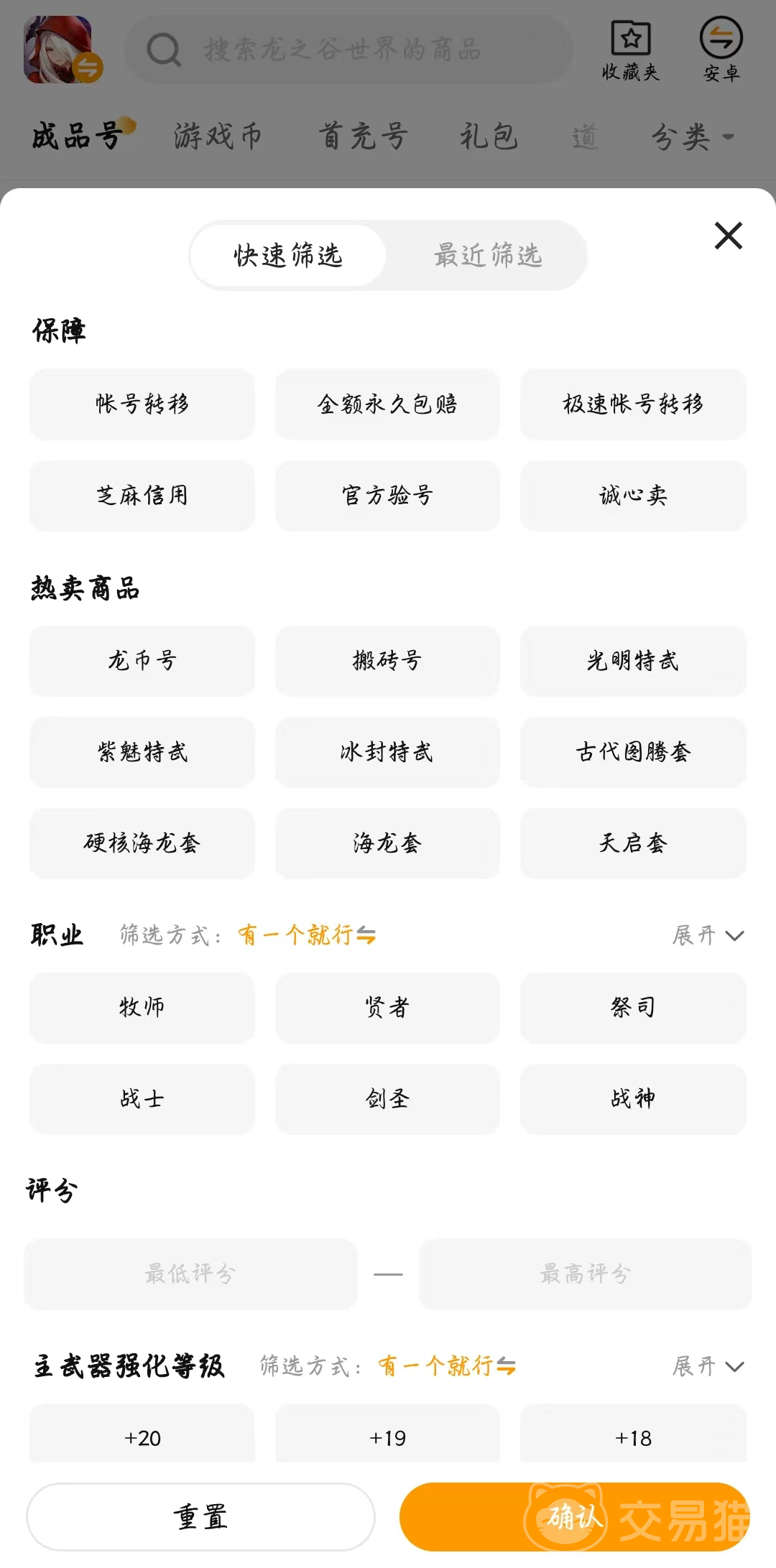 考虑到众多小伙伴的想法,小编给大家找到了一款不仅交易方便,而且十分安全靠谱的平台,链接就放在上面了。交易猫拥有庞大的用户群体,无论大家是售卖账号还是购买账号,都会非常快速,而且检索非常方便,如果大家想要购买龙之谷世界账号的话,那么可以根据自己想要的资源进行解锁,快速定位自己感兴趣的账号。
