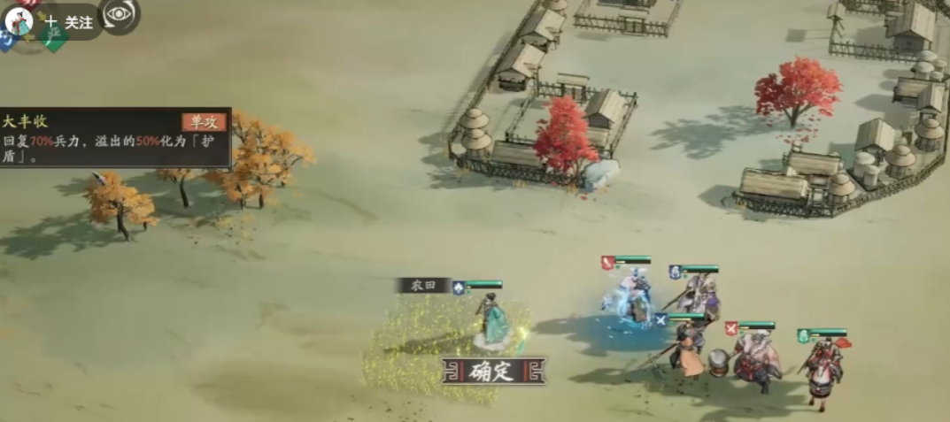 进入战斗后,首要任务是迅速占领地图上的农田区域。农田可为部队恢复70%兵力或转化为50%护盾,这一增益效果在战斗中极为关键,尤其在兵力濒临耗尽时能有效扭转战局。占领后应及时回补状态,为后续作战做好准备。初期阶段应避免兵力过度分散,在敌军逐步推进的情况下,可派遣部分武将主动出击,清理小股敌人,打乱其阵型,从而为后续进攻创造有利条件。