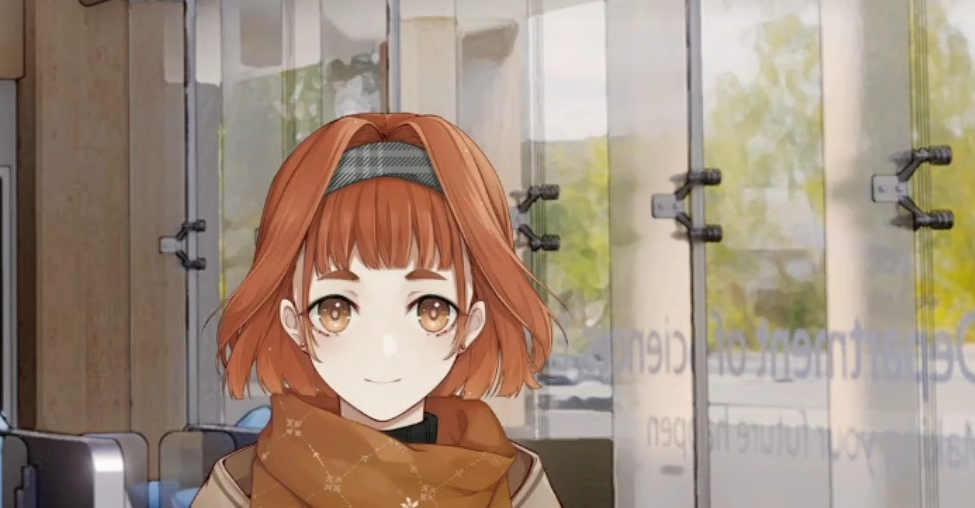 目前主角与景同属一个研究项目组,指导教授尚未到场,因此两人进行了短暂交谈。随后准备进入办公室时,一名陌生少女上前打招呼。她表示捡到了主角遗失的校园卡并专程归还。从对话中得知她名为汐,尽管相识时间不长,但双方性格相投,已有过多次学术交流与共同活动的经历。