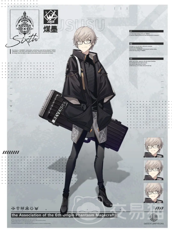 煤墨的被动可在出战期间为队伍中所有破坏属性成员提供2%攻击力加成。技能“替罪”召唤一个持续10秒、血量1000的魔石板,在此期间自身进入替身状态,承担全队50%物理伤害。奥义技召唤血量2000的魔石板维持5秒,召唤瞬间造成20%特殊伤害,之后每0.5秒发动一次攻击。