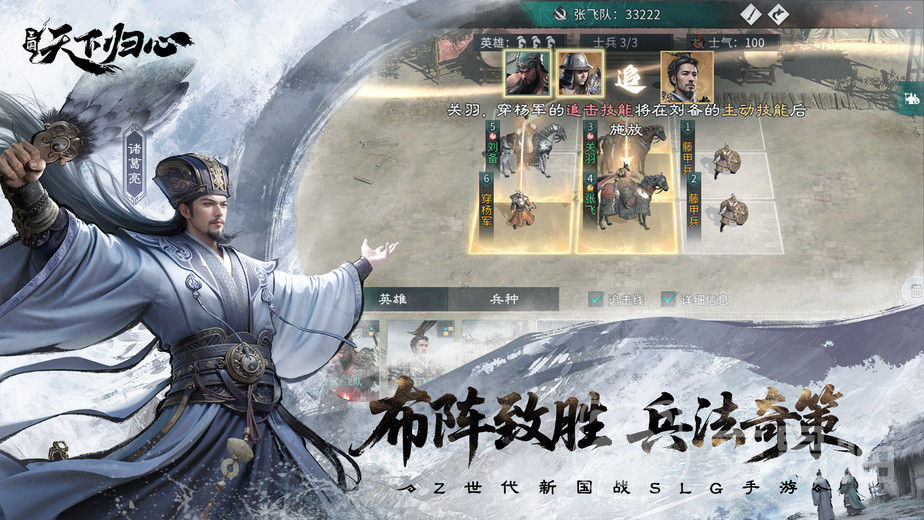 在《三国:天下归心》这款策略游戏中,诸葛亮作为蜀汉阵营的核心智将,凭借其卓越的谋略能力和全面的战场作用,成为众多玩家优先培养的关键角色。无论是挑战剧情关卡还是参与多人竞技对战,诸葛亮都能在队伍中发挥举足轻重的作用。他不仅具备稳定的输出能力,还能通过天赋系统为团队提供战术支持,显著提升整体作战效率与战场机动性。