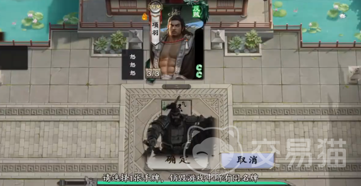第53关再次对阵项羽,建议使用“顺手牵羊”夺取其装备“诸葛连弩”,并重置“铁索连环”以获得一张“火杀”。出牌顺序上,先打出普通“杀”试探反应,再衔接“火杀”形成连续输出,最后凭借双“杀”连击将其击败。借助高效率的装备控制与出牌逻辑,可快速终结战局。