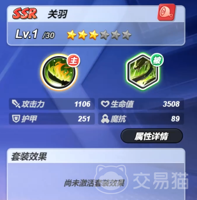 关羽在游戏中定位为SSR级别的角色,属于稀有度较高的单位。通常情况下,稀有等级越高的角色,基础属性与技能强度也更为出色。该角色以经典武圣形象登场,手持标志性的青龙偃月刀,整体设计兼具气势与实用性。从实战表现来看,关羽的各项能力数值均衡且突出,无论是新手还是资深玩家都能轻松驾驭,具备极强的泛用性。