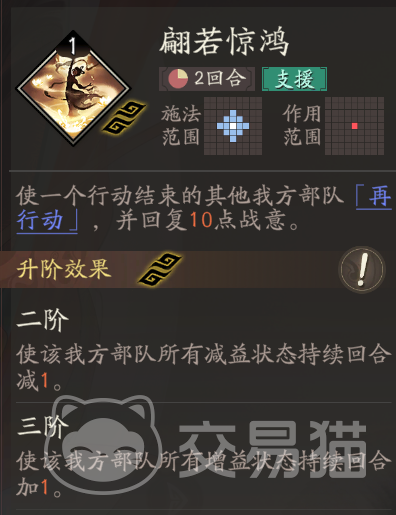 在技能配置方面,应优先考虑与自身机制相辅相成的组合。若未解锁特定天赋,推荐使用“翩若惊鸿+舞影+扶危”的搭配方案。其中,“翩若惊鸿”作为核心再动技能,能实现二次释放关键技能,战略意义重大。“扶危”不仅具备无冷却的治疗能力,还能驱散负面状态,有效提升团队持续作战能力。当天赋达到二阶及以上时,可切换为“翩若惊鸿+沉鱼落雁+援兵”的高阶组合。“沉鱼落雁”提供群体回血与战意恢复,配合天赋可为全队叠加增益效果;“援兵”则填补技能真空期,使整体循环更加流畅高效。