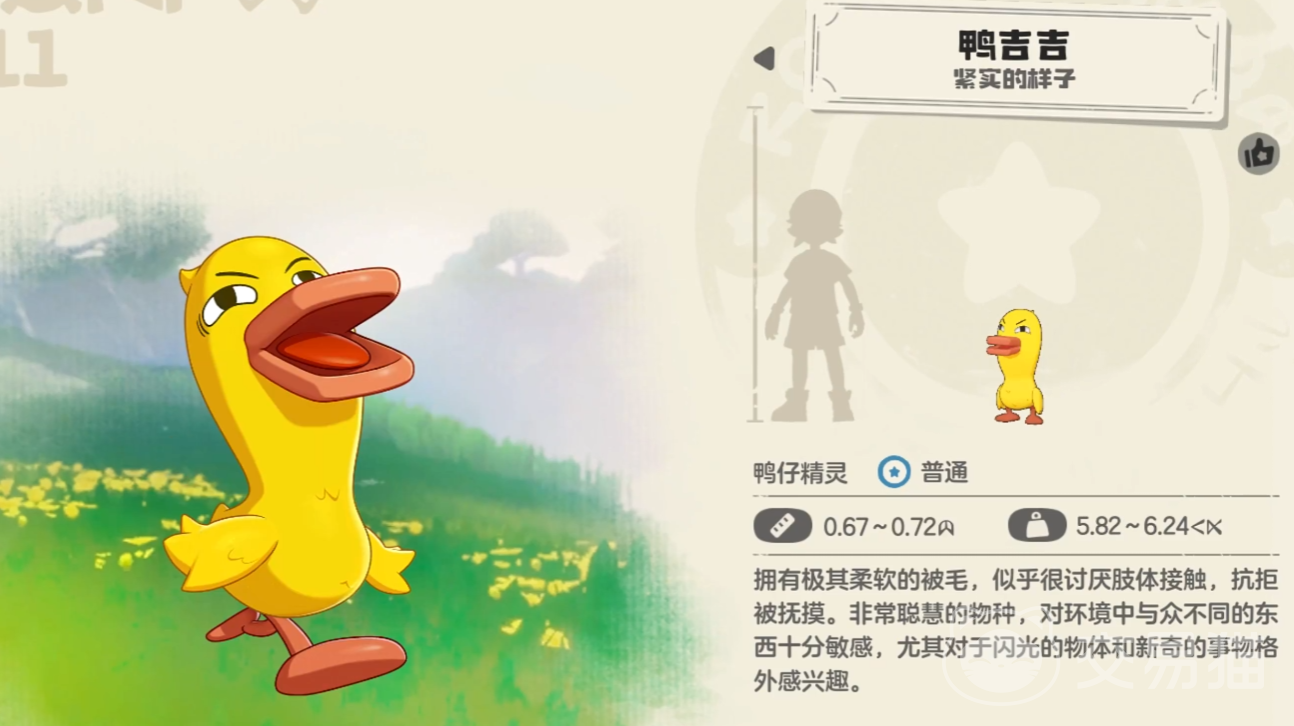 要完成该任务,首先需要明确霍曼尼所描述的目标精灵特征:嘴巴较大、全身覆盖绒毛、发出“嘎嘎”的叫声。根据这些线索可以判断,目标精灵正是鸭吉吉。鸭吉吉有两种体型形态——一种偏圆润,另一种较为瘦长,但都具备上述明显特征。只要确认了这一点,接下来的捕捉工作就会变得清晰有条理。