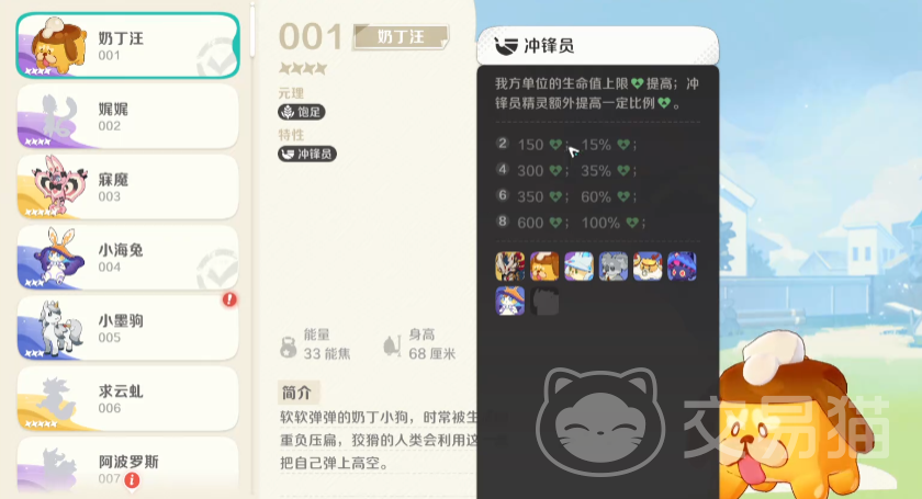 该精灵身高为77cm,初始能量为30能焦,资源消耗较低,便于频繁释放技能。属性方面归属于光明元理体系,在队伍中担任先锋角色时,不仅能吸引敌方攻击,还能利用自身元理特性增强全队生存能力。其核心战斗机制包括提供团队加速与护盾支援,属于兼具坦度与辅助功能的复合型前排单位。