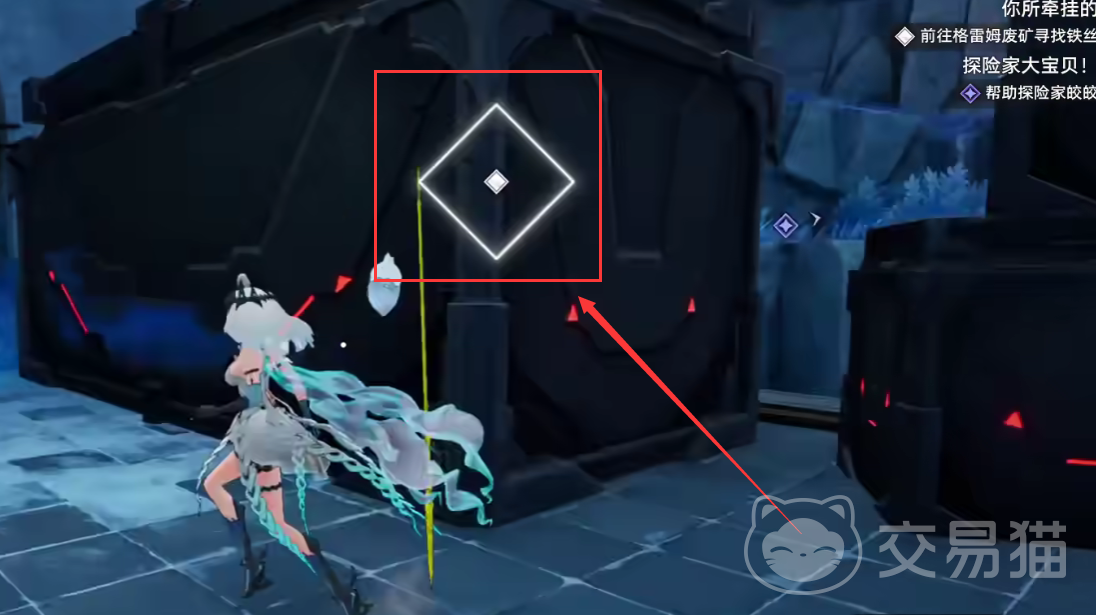 要获得“铁丝”,玩家需传送到格雷姆废矿的底层区域。具体位置位于矿层右侧的废墟地带,靠近一个明显的集装箱结构。接近该集装箱上方时,会出现白色交互提示条,按提示操作即可拾取所需物品。