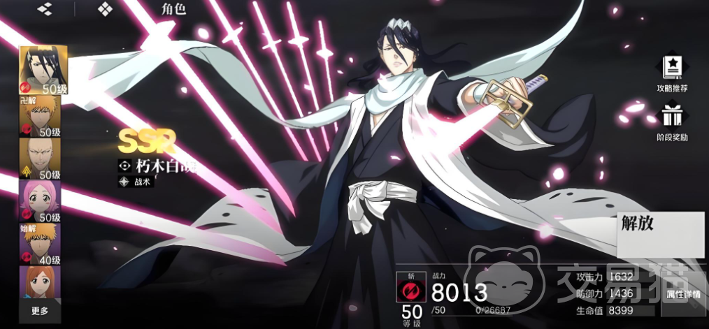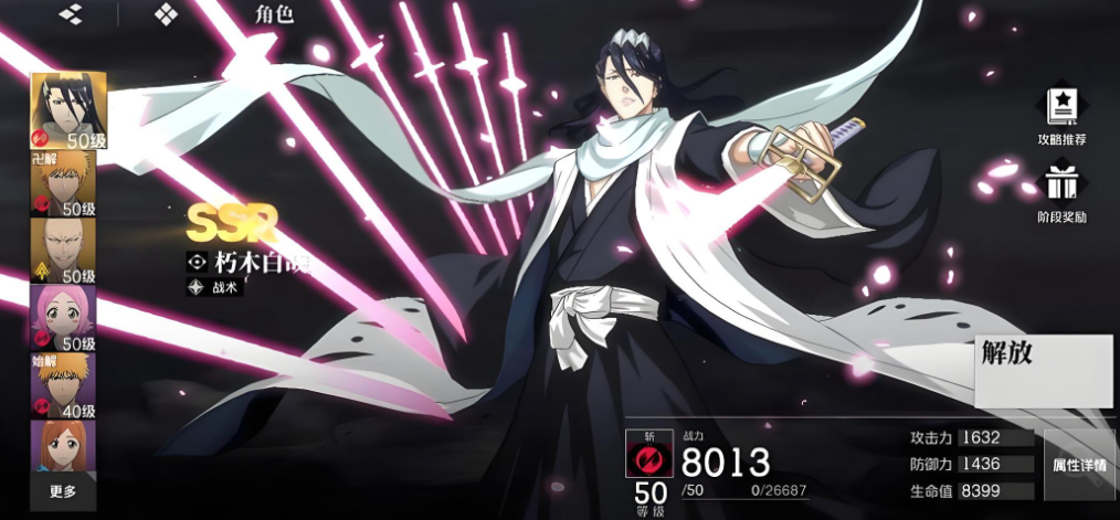 作为主力前线输出之一,黑崎一护以高速连斩和机动性见长。被动技能在释放战技后激活“解放状态”,此时普攻附带剑气穿透效果,对路径上敌人造成55%的额外伤害。战技可标记远处目标并瞬间突进至其身边,兼具位移与爆发优势。