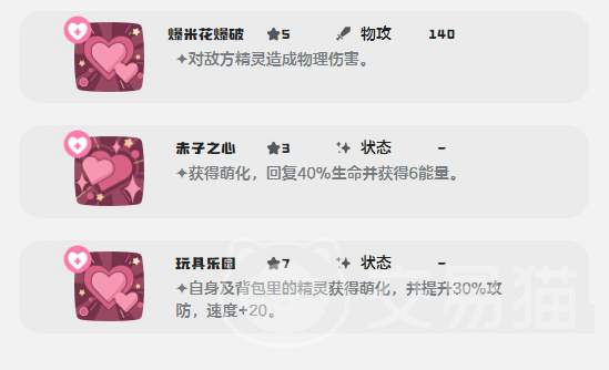 【超级糖果】是一项强力的物理输出技,基础威力高达130,命中后可使目标陷入“萌化”状态,干扰对手判断,同时提升后续部分技能的伤害效果;