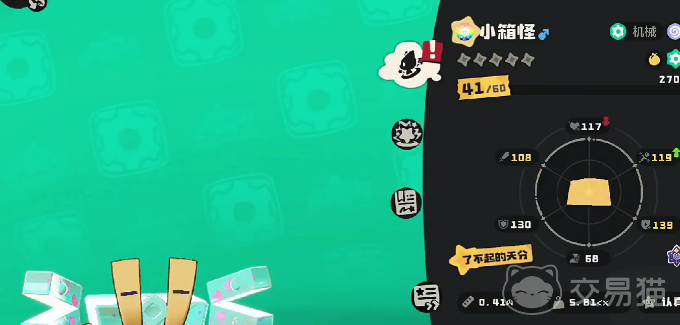 小箱怪是一只拥有“机械”与“幻”双属性的精灵,外形类似螃蟹,具有独特的伪装能力。当它的等级提升至36级时,便可自动进化为迷迷箱怪,完成形态转变后,基础属性将获得显著增强,整体战斗表现更上一层楼。