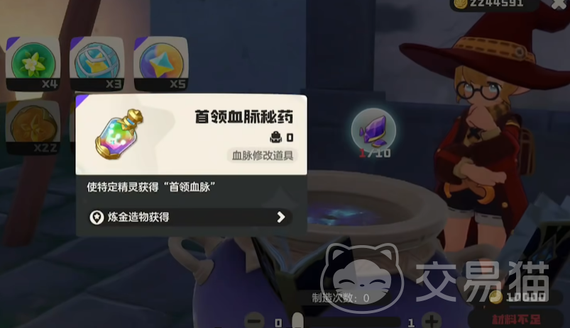 解锁配方后,前往炼金台查看精灵球栏位的最后一个选项,即可发现新增的首领血脉秘药配方。每合成一瓶秘药需消耗10个“首领血脉灵碎”,这意味着除首次放生外,还需额外放生9只首领精灵以集齐全部材料。建议仅放生当前队伍中不再使用的宠物,避免影响主力阵容。
