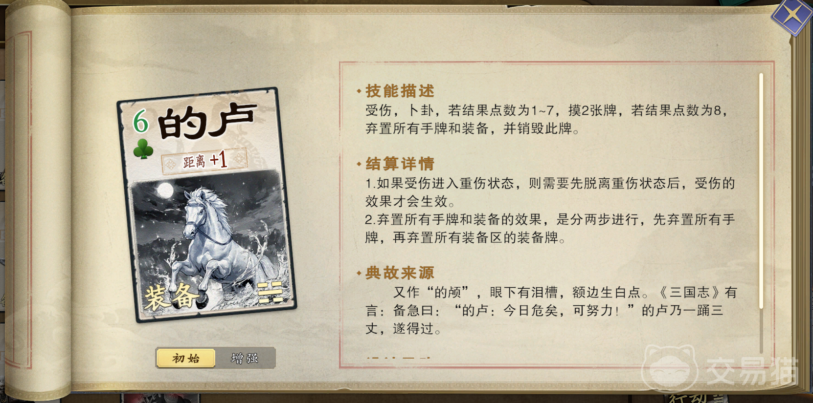 进攻型坐骑以高机动性和输出联动著称。赤兔可提升20%移动速度,并拥有专属技能“逐日”——每回合开始时摸一张牌,若该回合未受到伤害,则额外再摸一张,非常适合先手压制类武将,配合连击类技能可迅速建立优势。乌雅则具备“突围”技能,每次使用【杀】指定目标时可摸一张牌,每回合最多触发三次,适合频繁使用【杀】的武将,实现手牌资源的持续补充。防御向坐骑中,的卢与绝影表现突出,的卢在受到伤害时可进行一次判定,有利于残血反打;辅助类代表为爪黄飞电与盗骊,分别拥有“传令”与“盗粮”技能,可在团队协作中发挥调度与干扰作用。